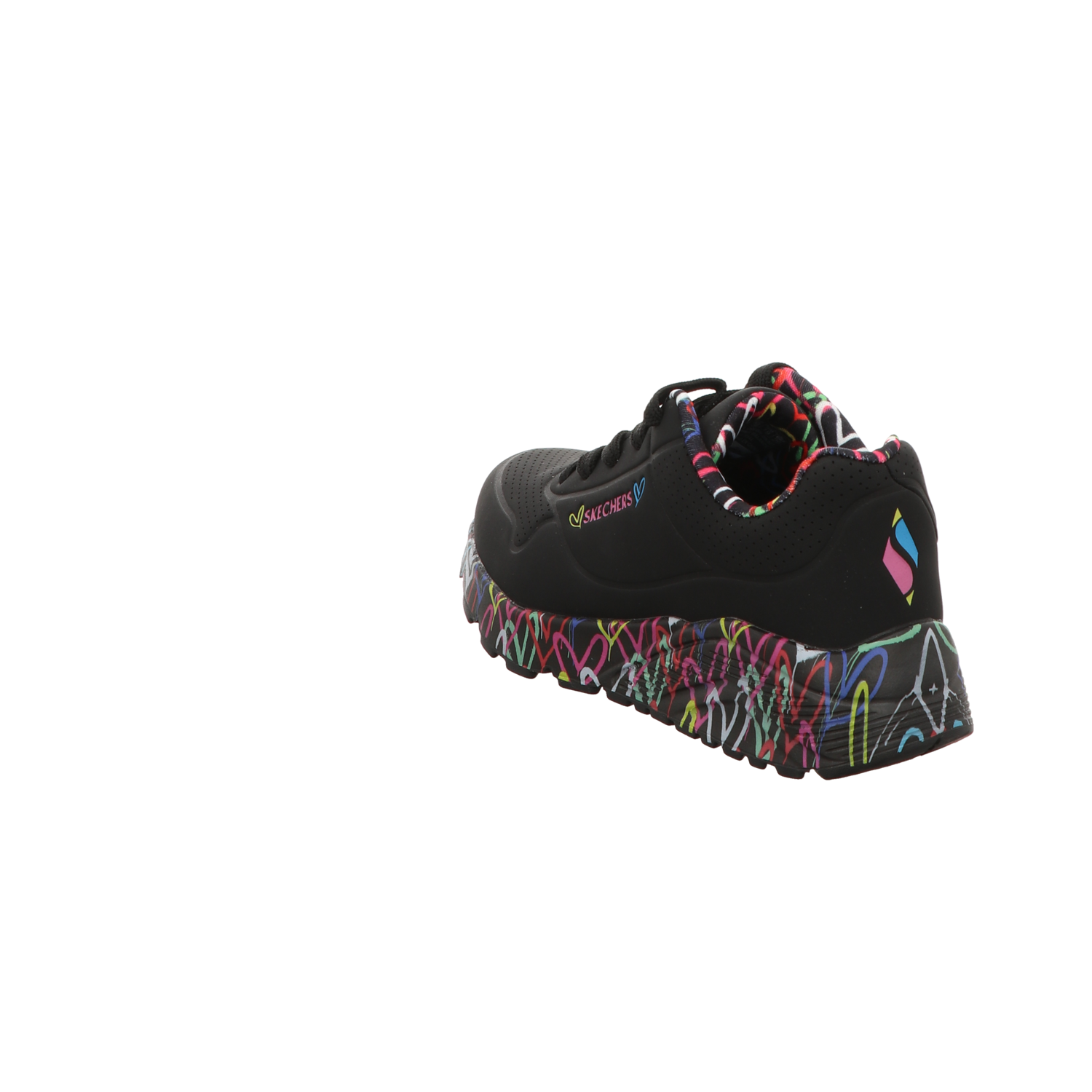 Entdecken Sie die Skechers Damen Slipper X J Goldcrown Uno Lite Love in elegantem Schwarz. Diese Slipper vereinen Komfort und Stil, ideal für den Alltag.