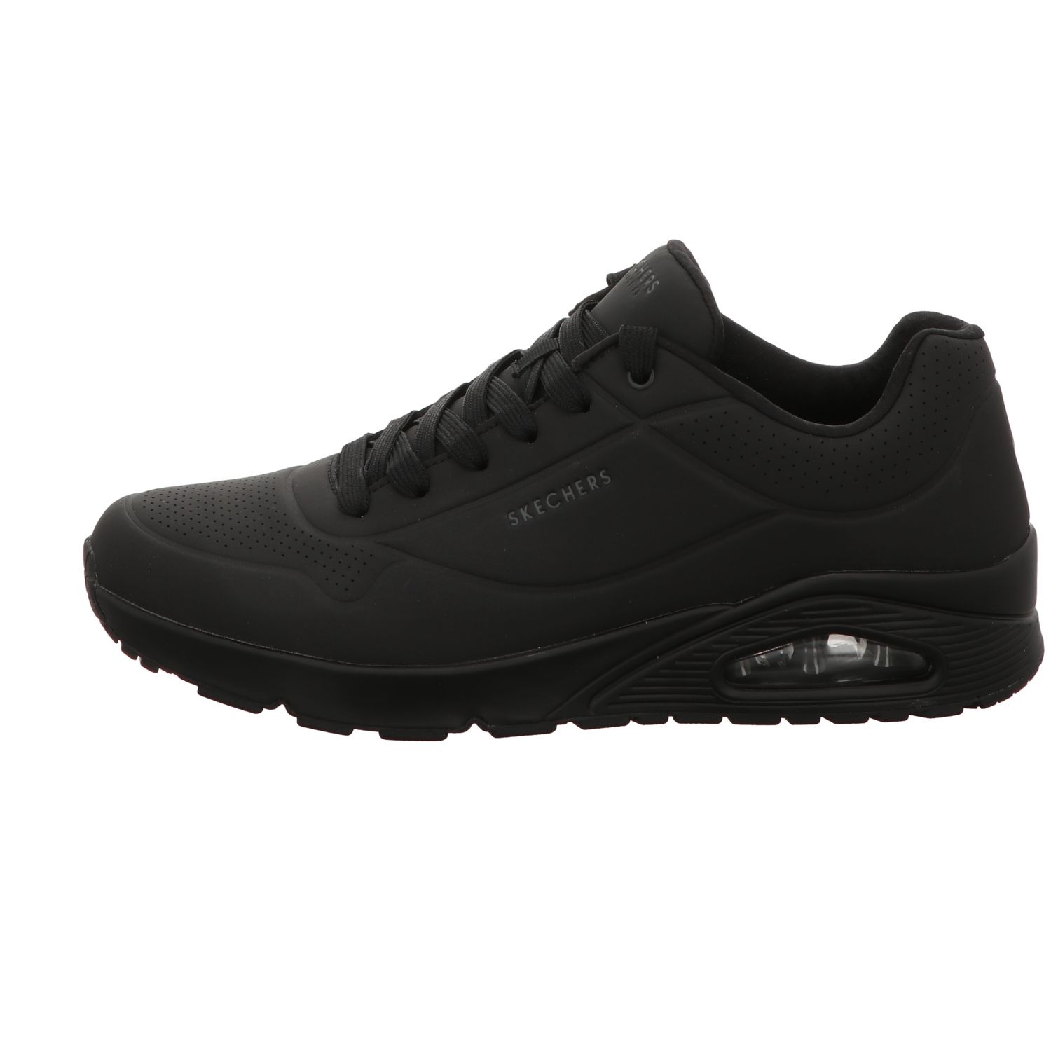 Der Skechers Herren Schnürschuh Uno Stand On Air in Schwarz ist der perfekte Begleiter für sportliche und lässige Anlässe. Mit seinem modernen Design und der bequemen Passform bietet er sowohl Stil als auch Komfort.